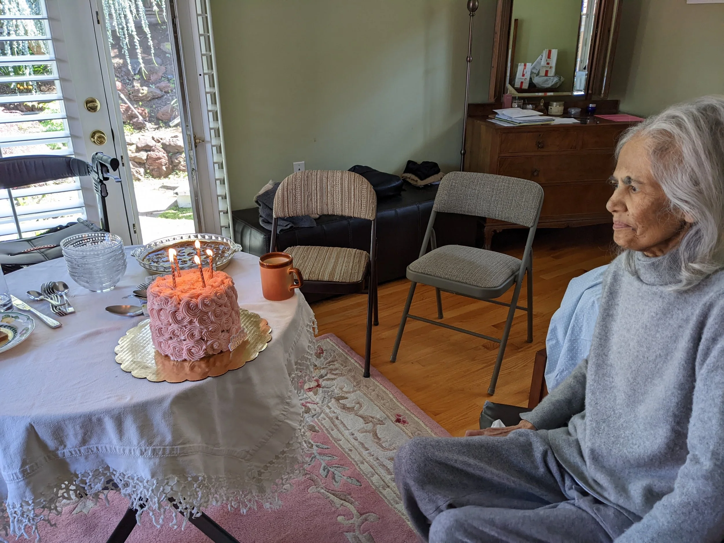 Usha’s 74th birthday last month with Deepthi, Sumudu, Ranjini, and Manjula with a beautiful (and tasty!) cake created by Manjula (2022)